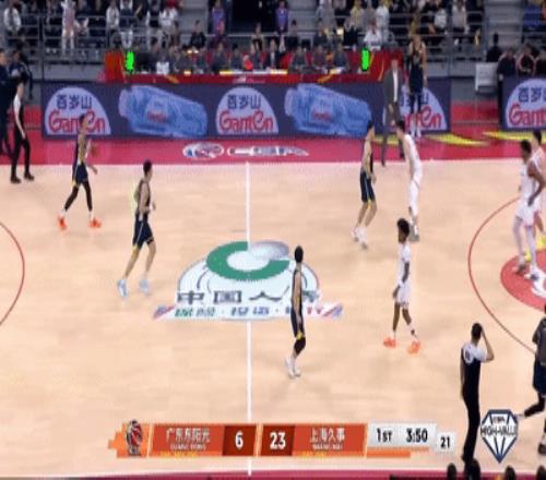 第一节广东队上来就被上海的一套内外连线+跑轰反击直接打懵,第一节进行到还剩3分47秒,广东队已经落后上海20分,杜锋再次准备换人,焦泊乔来到场边候场。