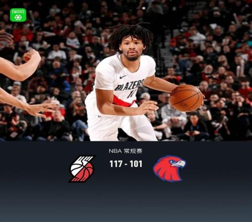 第四节,开拓者延续势头卡马拉、里斯、吕佩尔多点开花一波15-2直接拉大至14分,随后老鹰短暂反扑追至7分,但随后节末5分钟彻底哑火仅得3分,开拓者一波12-3彻底收下比赛,全场结束,开拓者117-101战胜老鹰。