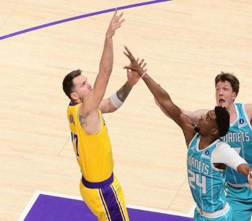 NBA常规赛,湖人坐镇主场迎击黄蜂。本场比赛之前,湖人24胜14负排名西部第5,近段时间他们状态起伏不定,里夫斯受伤对球队打击还是比较大的,湖人缺乏稳定的角色得分点,进攻端太依赖詹姆斯东契奇双核心了,与此同时,他们的防守也不太行,进攻效率联盟第7,防守效率却只有联盟第23,场均盖帽联盟倒数第3。东契奇防守习惯不好总爱抱怨,老詹老了,里夫斯天赋有限,防守可能会成为湖人季后赛取得突破的阻碍。另一边的黄蜂队,本场比赛之前,14胜26负排名东部第12,作为鱼腩队之一,黄蜂实力有限,阵容也都是年轻球员。