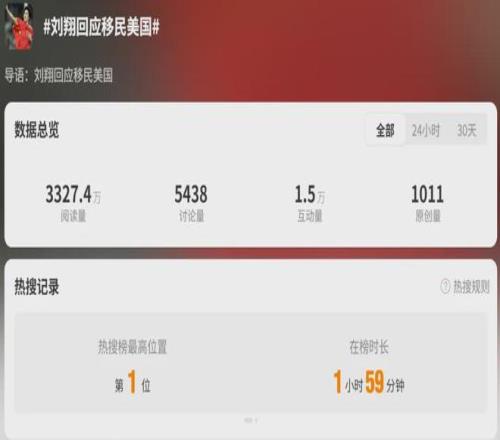 今天(1月16日),“刘翔回应移民美国”话题词登上微博热搜第一。