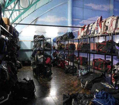 这是2025年11月22日在肯尼亚内罗毕拍摄的肯尼亚“冰狮”冰球队器材。新华社记者 李亚辉 摄