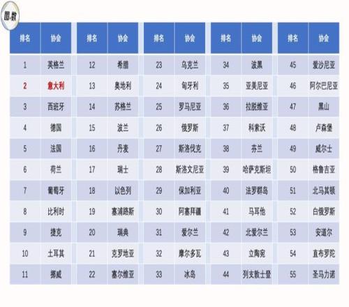 虽然意大利国家队尚未确定是否能参加2026美加墨世界杯,但意大利整体的足球实力还是很强的,在俱乐部的欧战方面,意大利目前是欧洲第2协会(2025年6月版欧足联系数),仅次于英格兰。