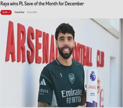 官方:拉亚在阿森纳2-1战胜布莱顿一役中的扑救被评为了英超12月份最佳扑救。